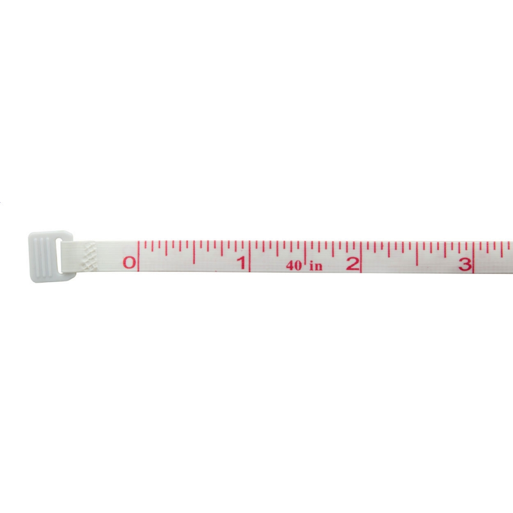 Artikel-Nr: AND808032-01Schneidermaßband (1 m) aus Kunststoff mit Druckknopfverschluss. Skala in cm und Zoll.