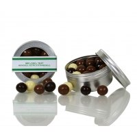 Artikel-Nr: A27608033Eine kleine Aufmerksamkeit für Kunden, Freunde und Geschäftspartner. In einer schönen Runddose mit Sichtfenster finden sich leckere Schoko-Haselnüsse, dragiert mit feinster Vollmilch-, Zartbitter und weisser Schokolade. Werbemöglichkeit an Runddose mittels individueller Banderole. Inhalt: Runddose mit Sichtfenster / 100 g. Schoko-Haselnüsse.
