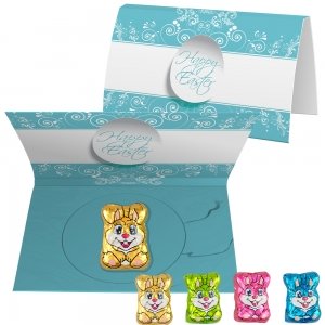 Schoko-Hasen Mix, ca. 6g, Werbekarte A6 gefaltet