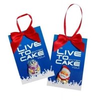Verpackung: Auf bedruckte Karte aufgeklebt und mit roter oder weißer Satinschleife und Aufhängeband aufgebunden.