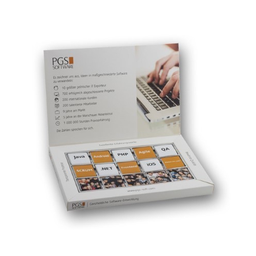 Artikel-Nr: W965S027315 feine Schokoladentafeln zum Verschenken. Großflächige Werbemöglichkeiten auf der Displayverpackung und der Schokoladenfolie.
