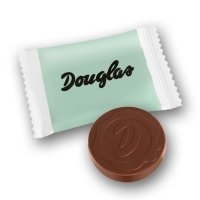Individualisierung: Flexodruck auf die Folienverpackung, individuelles Logo auf der Schokolade möglich