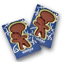 Die Sprechblase der Schokoladenfigur und die Verpackung kann personalisiert werden.