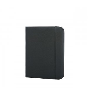 Artikel-Nr: HLF1813068-10Schwarze Schreibmappe mit Organizer-Elementen; verschließbar mit farbigem Gummiband; inkl. Schreibblock; flaches Einsteckfach; Gummischlaufe für Kugelschreiber