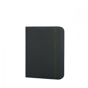 Artikel-Nr: HLF1813068-187Schwarze Schreibmappe mit Organizer-Elementen; verschließbar mit farbigem Gummiband; inkl. Schreibblock; flaches Einsteckfach; Gummischlaufe für Kugelschreiber