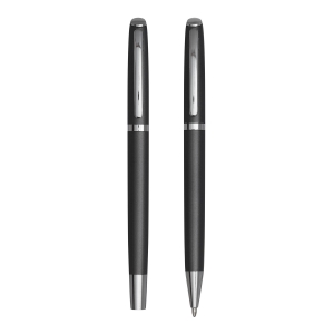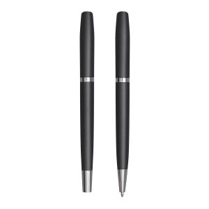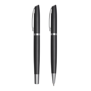Artikel-Nr: INP56-1101623Schreibset ALPHABET, 2-teilig: bestehend aus Kugelschreiber mit Drehmechanismus (schwarzschreibend) sowie Tintenroller mit Verschlusskappe mit Clip (schwarzschreibend), beide Schreibgeräte mit Aluminium-Schaft, in Box