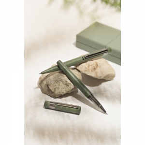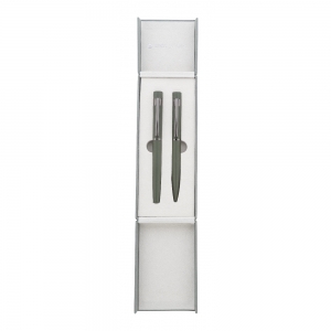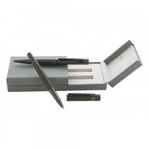 Artikel-Nr: AND800134-07Elegantes Kugelschreiber- und Tintenroller-Set aus Metall mit glänzenden Gunmetal-Details, blauschreibend. In farblich abgestimmter Geschenkbox. Marke: André Philippe.