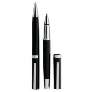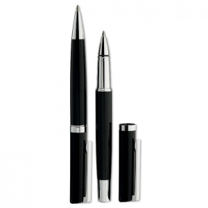 Artikel-Nr: OCBMO8216-03Schreibset aus Messing und Edelstahl in einer Geschenkbox. Drehkugelschreiber: blaue Tinte, Tintenroller schwarze Tinte.