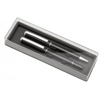 Messing, schwarz, Kugelschreibermine blau, Tintenroller blau, CLIC CLAC Geschenkverpackung Maße: 170 x 54 x 23 mm