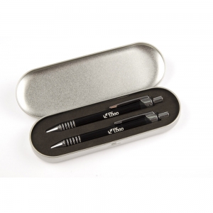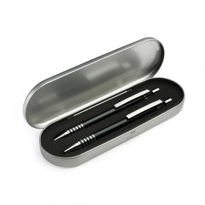 Artikel-Nr: ARD19227DAKOTA Schreibset: Druckbleistift und Kugelschreiber. Alles in eine handliche Metalletui gepackt. Das Logo wird auf jedem Produkt aufgetragen.