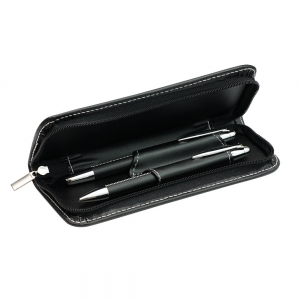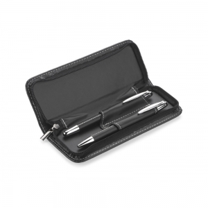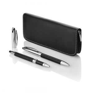 Artikel-Nr: ARD19290-02Schreibset Elegance: Kugelschreiber und Rollerball in einem Etui aus lederähnlichem Material (PU). Kugelschreiber und Rollerball mit blauen Tintenminen. Wir lasergravieren Ihr Logo auf die Schreibgeräte.