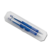 Set mit Kunststoffkugelschreiber und Druckbleistift in Geschenkbox, blauschreibende Mine.