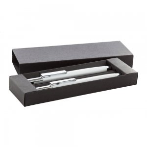 Artikel-Nr: AND809479-01Aluminium-Schreibset, bestehend aus Kugelschreiber (blauschreibend) und Druckbleistift (0,7mm). Einzeln in schwarzer Geschenkbox.