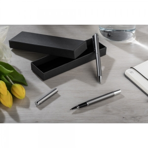 Artikel-Nr: ARD19100-14Das ILLINOIS-Set ist ein ästhetisches Set, das einen Kugelschreiber und einen Tintenroller enthält. Es ist aus recyceltem Aluminium hergestellt. Minenfarbe: blau für den Kugelschreiber, schwarz für den Tintenroller. Produktabmessungen: 140 x ⌀ 10 mm (Kugelschreiber); 143 x ⌀ 10 mm (Rollerball); 180 x 55 x 24 mm (Box).
