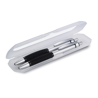 Artikel-Nr: 326118563000Die beiden Schreibgeräte werden in einem Etui aus hartem, gefrosteten Kunststoff mit transparenter Oberseite präsentiert.