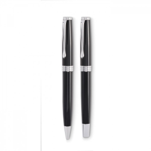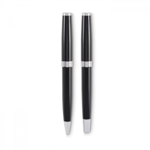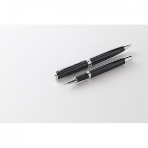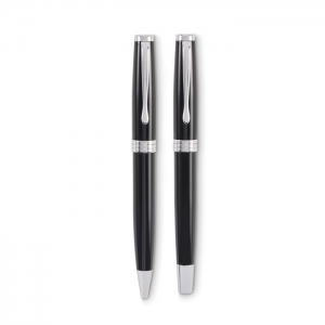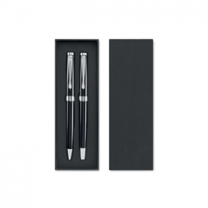 Artikel-Nr: OCBMO2636-03Set mit Drehkugelschreiber und Tintenroller mit Korpus aus recyceltem Edelstahl. Blaue bzw. schwarze Tinte. Lieferung in einer Schachtel.