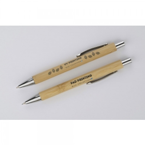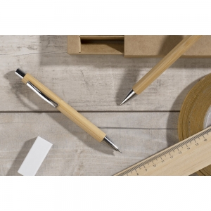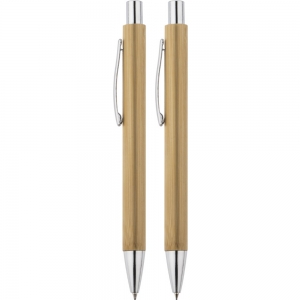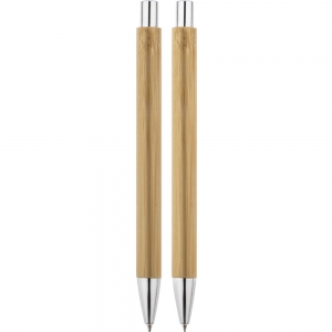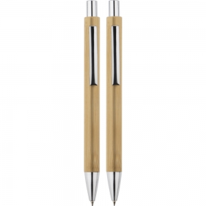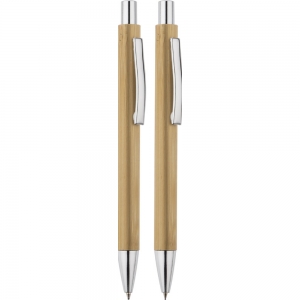 Artikel-Nr: ARD19664Das Schreibset MAMBOO besteht aus einem Kugelschreiber und einem automatischen Bleistift, die in einem braunen, umweltfreundlichen Karton verpackt sind. Der Körper von Kugelschreiber und Bleistift besteht aus natürlichem Bambus. Chromelemente verleihen ihm Eleganz. Blaue Kugelschreibermine, Druckbleistift 0,7 mm dick.