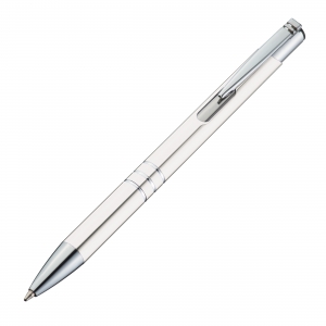 Artikel-Nr: MCM1333006Schreibset aus Metall, bestehend aus einem Kugelschreiber mit blau schreibender Großraummine und einem Druckbleistift mit je 3 Zierringen. Ihre Werbung wird rechts vom Clip gelasert. Der Gravurpreis versteht sich für beide Schreibgeräte.