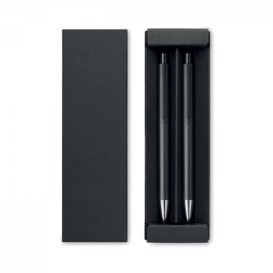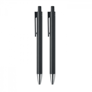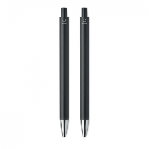 Artikel-Nr: OCBMO2567-03Schreibset aus recyceltem Aluminium. Bestehend aus 2 Kugelschreibern (1x blaue Tinte, 1x Graphitmiene). Präsentiert in einer Schachtel aus recyceltem Papier.
