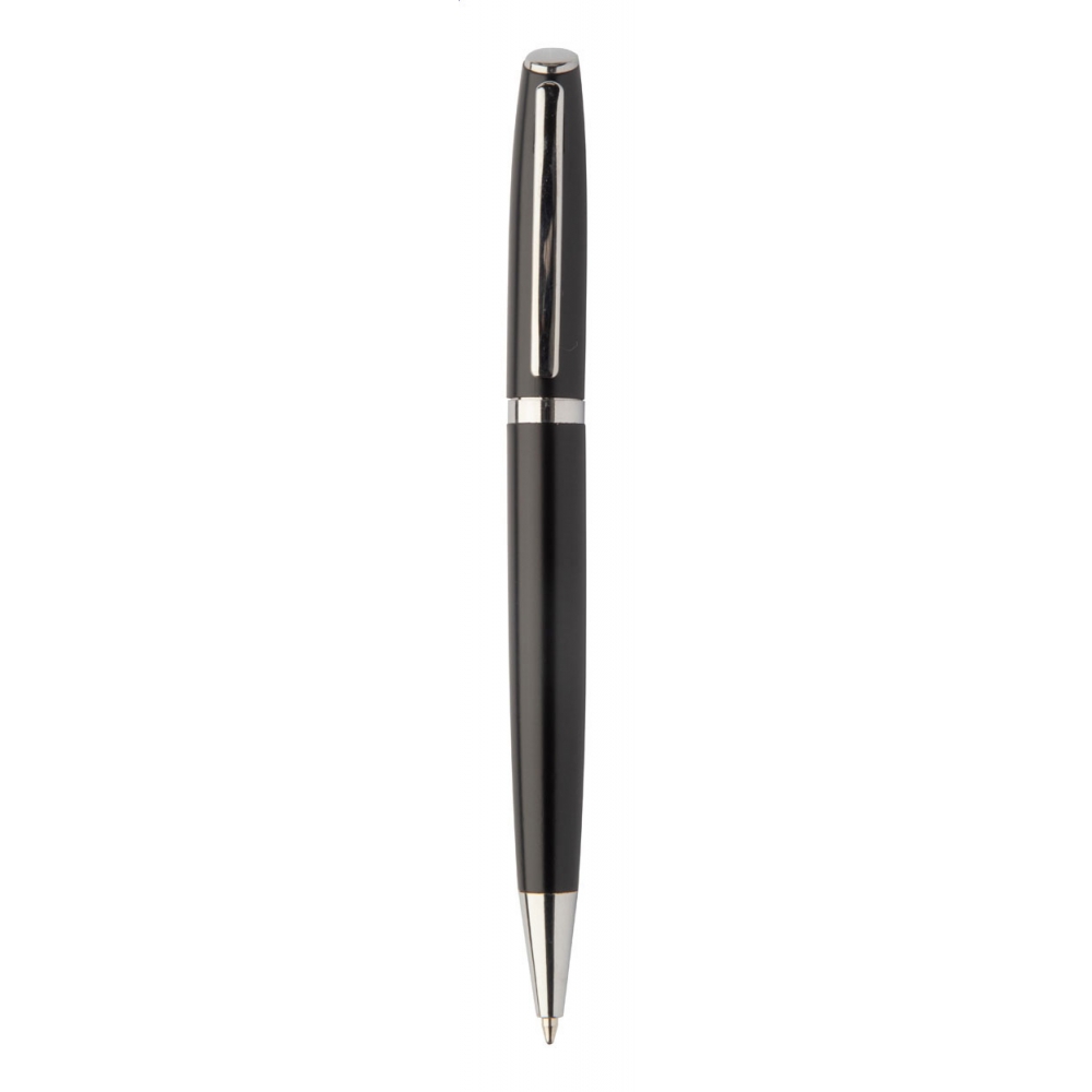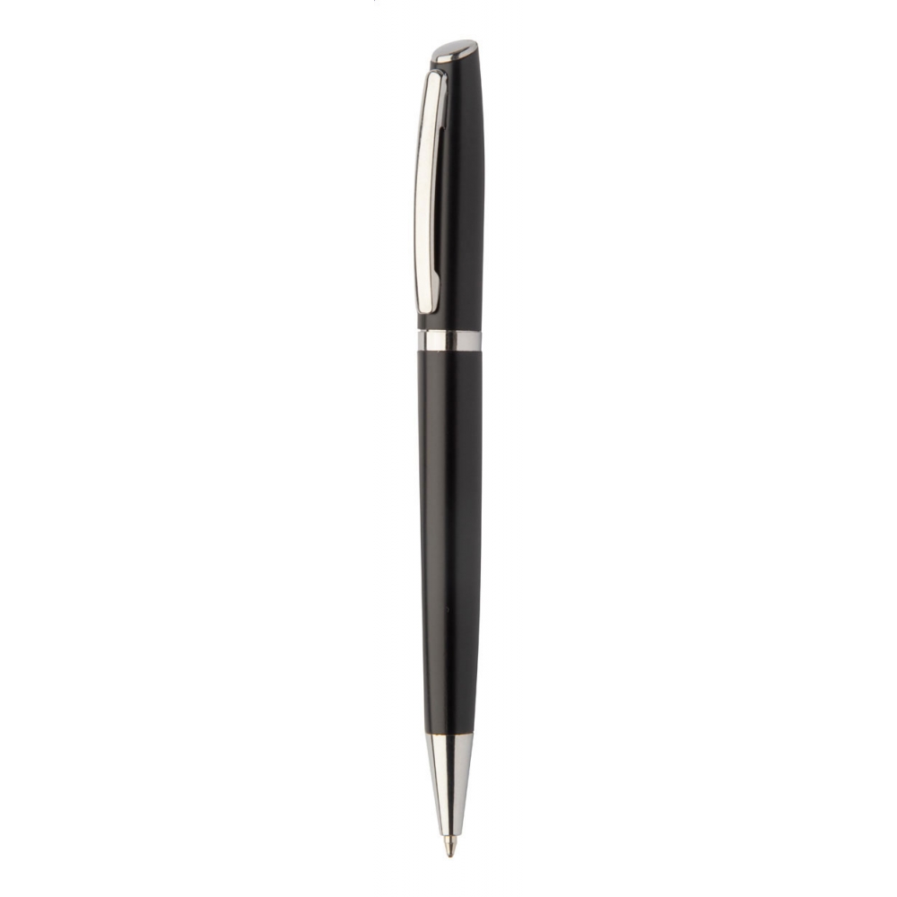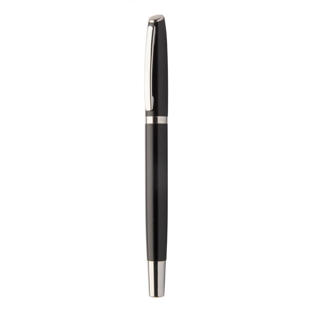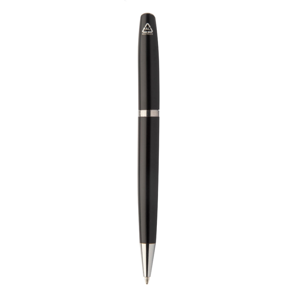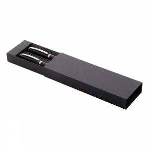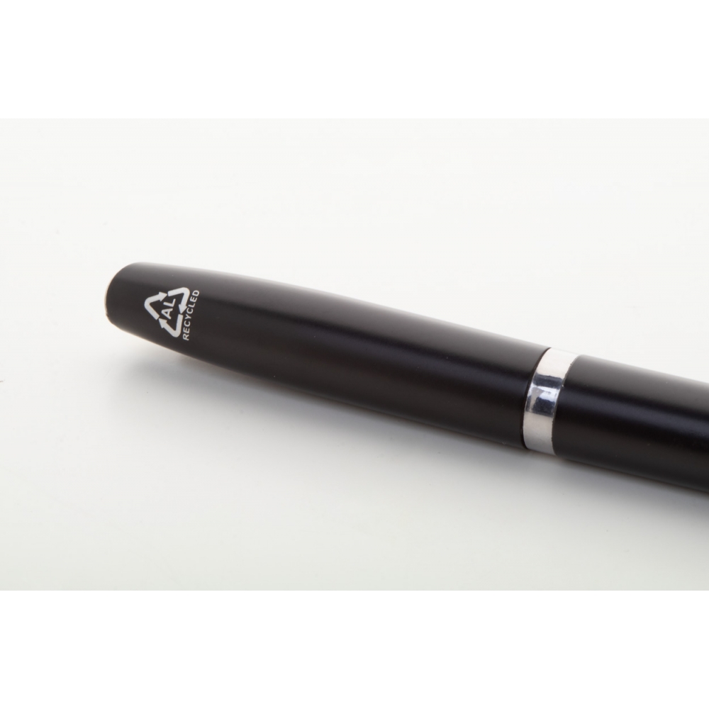 Artikel-Nr: AND808109-10Stiftset aus recyceltem Aluminium mit Rollerball und Kugelschreiber in schwarzer Geschenkbox aus Papier, blauschreibend.