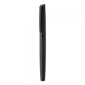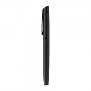 Artikel-Nr: AND800136-10Elegantes Kugelschreiber- und Tintenroller-Set aus Metall mit diagonal strukturiertem Schaft, blauschreibend. In zweifarbiger Geschenkbox. Marke: André Philippe.
