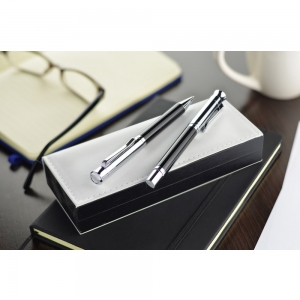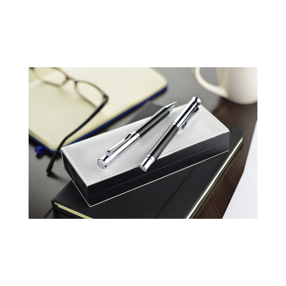 Artikel-Nr: ARD19228Der WASHINGTON D. C. besteht aus einem Kugelschreiber aus Metall und einem Etui aus lederähnlichem Material (PU). Die Artikel sind in einer weißen Schachtel verpackt. Wir gravieren Ihr Logo auf den Kugelschreiber und den Kugelschreiber.