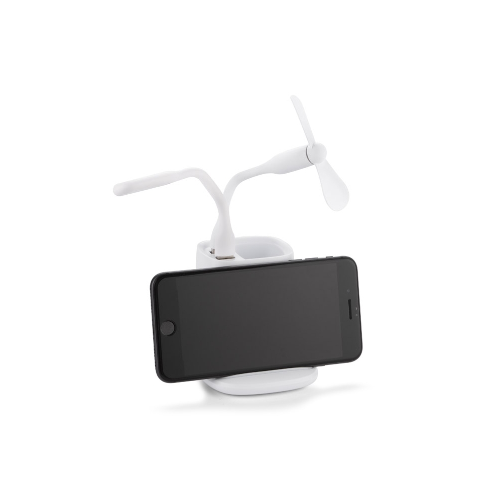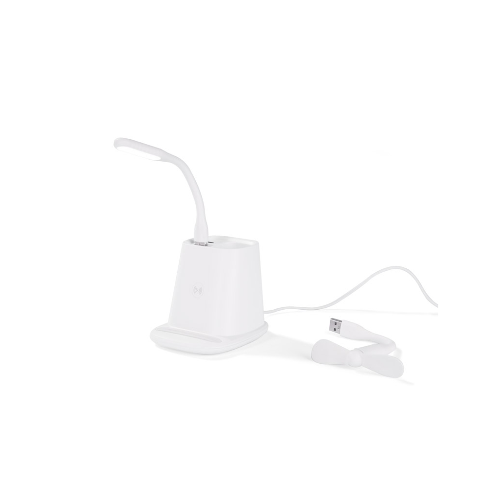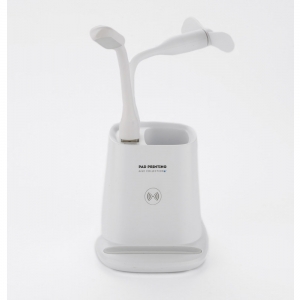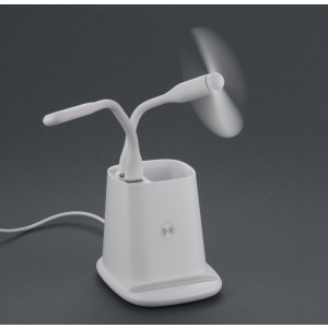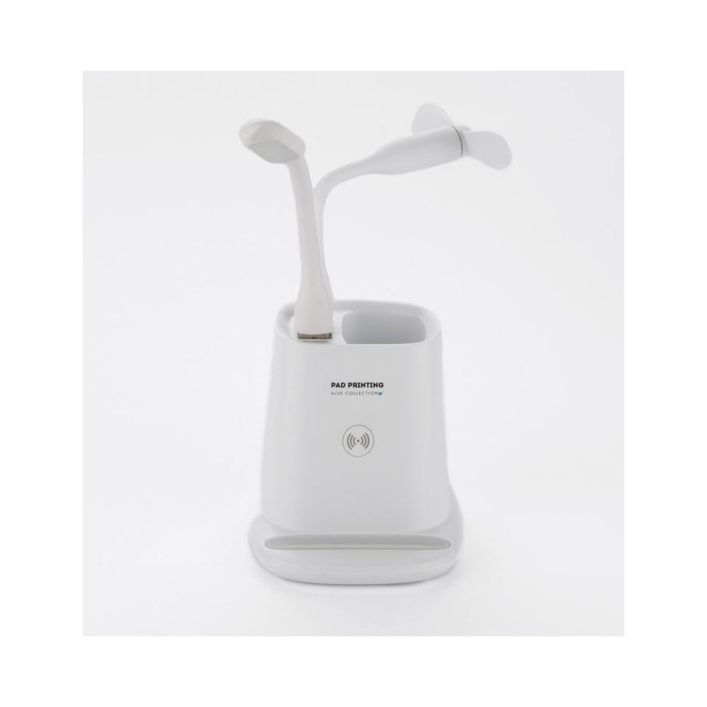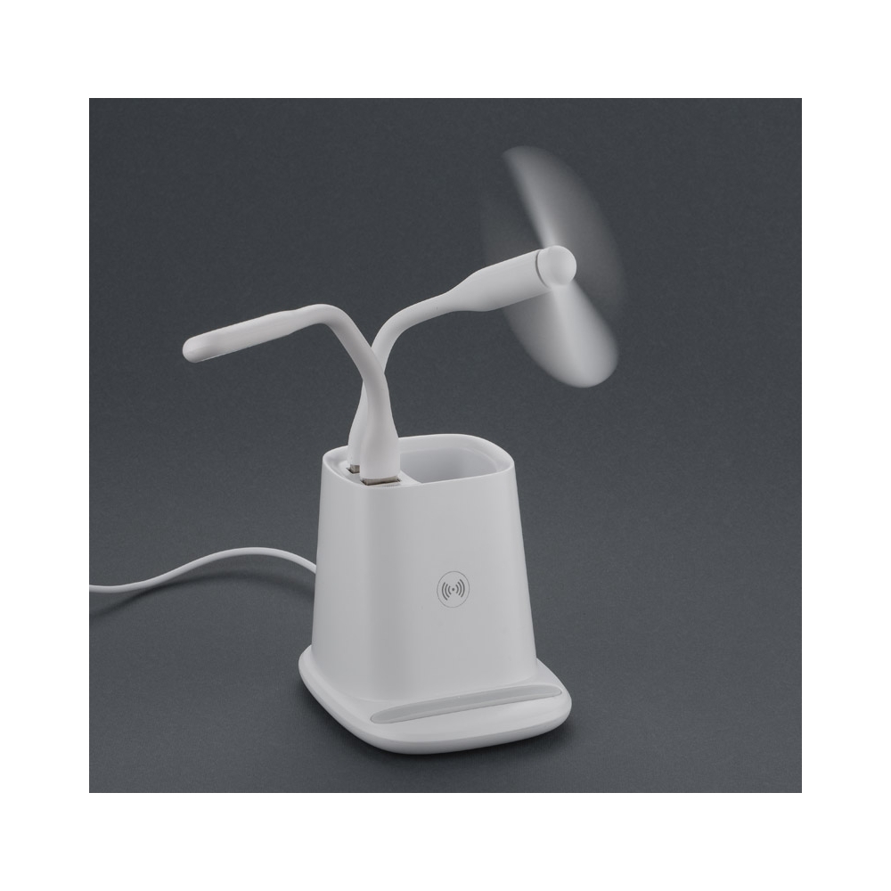 Artikel-Nr: ARD09131-01Schreibtischbehälter BERGO ist das perfekte Gadget für Arbeit am Schreibtisch. Es verfügt über ein eingebautes kabelloses Ladegerät, das auch als Telefonständer dient, und zwei USB-Anschlüsse, über die das mitgelieferte Zubehör mit Strom versorgt wird: einen Lüfter und eine Lampe. Wenn Sie kein Zubehör verwenden, können die USB-Anschlüsse als Hubs fungieren. Technische Daten: Micro-USB-Eingang: 5 V / 2A, kabelloser Ladegerätausgang: 5 W, 2 USB-Ausgänge: 5 V / 2A (max.)