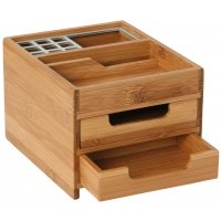 Mit sechs Fächern: zwei für Büroklammern, Notizzettel ..., zwei mit praktischer und dekorativer Metallzierleiste für Stifte & Co und zwei mit je einer 11 x 7 x 2,5 cm großen Schublade. Leer!