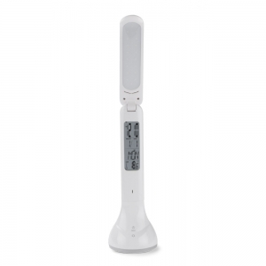 Artikel-Nr: ARD09066Eine einzigartige Schreibtischlampe mit eingebauter Wetterstation. Die Lampe verfügt über 3 Lichtintensitätsstufen, wodurch der Schreibtisch immer entsprechend beleuchtet ist. Aufgrund des speziellen Filters an den Leuchtdiode ist das Licht natürlicher und hilft, die Augen zu schützen. Die variable mehrfarbige Beleuchtung (RGB - red, green, blue) der Basis verleiht ihr modernes Aussehen und schafft eine unnachahmliche Atmosphäre. Die Lampe ENLI verdankt ihre Funktionalität dem eingebauten Akku mit einem Fassungsvermögen von 1200 mAh. Zudem kann sie an einer beliebigen ohne überflüssige Verkabelung platziert werden. Die eingebaute Wetterstation verfügt über folgende Funktionen: Uhrzeit, Datum, Wochentag, Temperatur, Wecker und Geburtstagserinnerung.