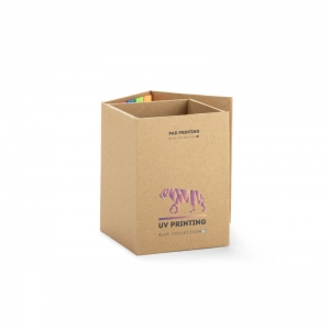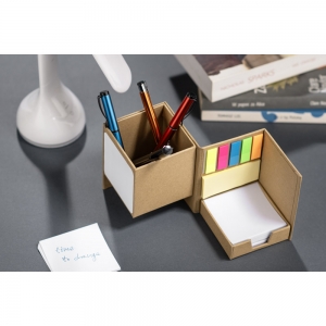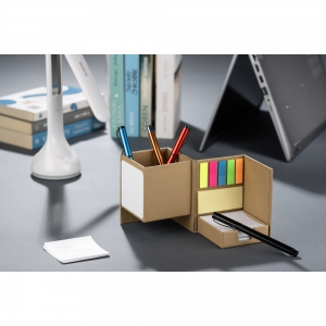 Artikel-Nr: ARD18206-17Der KOS-Schreibtischorganizer ist ein funktionales Werbegeschenk aus Kraftpapier. Zusammengeklappt dient er als eleganter Schreibtischständer für Büroutensilien und sorgt für Ordnung auf dem Schreibtisch. Aufgeklappt enthält er einen Satz Haftnotizen, darunter fünf verschiedenfarbige Folienmarker (je 25 Stück), mittelgroße gelbe Haftnotizen (25 Stück) und etwa 200 lose Blätter im Format 72 x 72 mm, die in einem dafür vorgesehenen Fach platziert sind. Der KOS-Schreibtischorganizer ist außerdem mit einem Fach für Notizen mit einem löschbaren Marker ausgestattet, was seine Funktionalität erhöht. Dank seiner Branding-Möglichkeiten können Sie Ihr Logo oder einen anderen Werbetext darauf platzieren, was ihn zu einem perfekten Branding-Tool macht.