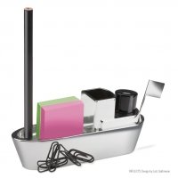 Artikel-Nr: 34251394Das kleine Schiff beherbergt einen Bleistift, eine magnetische Büroklammernhalterung und einen Spitzer mit Abfallreservoir. Ganz in Seefahrermanier findet man auf der Backbord und der Steuerbordseite einen pinkfarbene oder grünen Haftnotizblock. Im Schornstein des Minifrachters ist Platz für weitere Schreibgeräte. Man kann sogar Flagge zeigen: Auch die kleine Fahne am Heck kann veredelt werden.