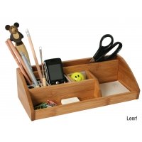 Mit sechs Fächern für Stifte, Büroklammern, Lineal, Zettel ... Besonders schönes Design aus massivem Bambusholz kombiniert mit edlem Metalldekor. Leer!
