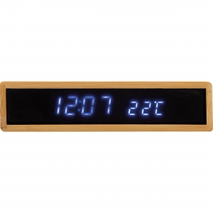 Artikel-Nr: EAG267213Digitale Schreibtischuhr aus Bambus mit LED Display, Wireless Charging, Weckfunktion und Temperaturanzeige. Ihre Werbung wird auf die Oberseite gelasert.