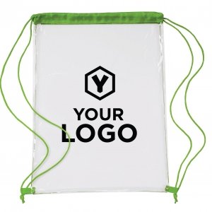 Artikel-Nr: GIV0927001Turnbeutel aus PVC, transparent, mit farbigen Applikationen und Schultergurten aus Kordeln.