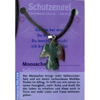 Trendige, schutzbringende Halskette aus Textilkordel und Astro-Glücksstein-Amulett. Auf der Verpackung finden Sie die Charakteristik des Glückssteins Moosachat.