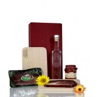Artikel-Nr: A276K00900Ein zünftiges Vesper Präsent bestehend aus einem schmackhaften Original Schwarzwälder Schinken, exquisitem Landbiersenf, Vesperbrett auf Wunsch mit Ihrem Branding, sowie eine formschöne Flasche Bali 0,2 Ltr., sandgestrahlt auf Wunsch mit Ihrem Logo und gefüllt mit feinem Kirschwasser 40 % Vol . Präsentiert wird dieses Vesper- Set in einer ansprechenden Präsentkartonage mit passendem Sizzle Pak. Kosten für Brandstempel auf Anfrage.