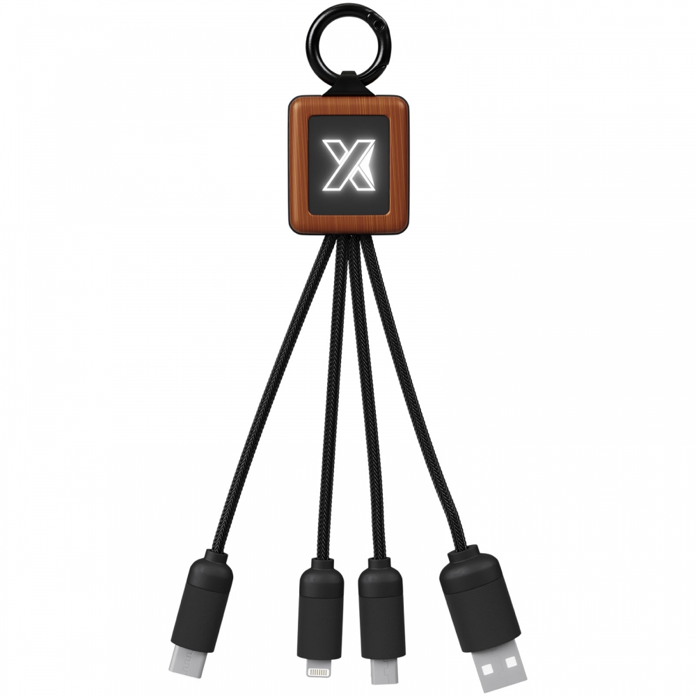 Artikel-Nr: CPO2PX044713-in-1 20W Kabel aus Holz mit leuchtendem Logo und 3 Anschlüssen (Typ-C / Micro-USB / iPhone), sowie Schnüren aus recyceltem PET-Kunststoff. Das Kabel kann bis zu 3 Geräte gleichzeitig aufladen. Patent EUROPE EUIPO.