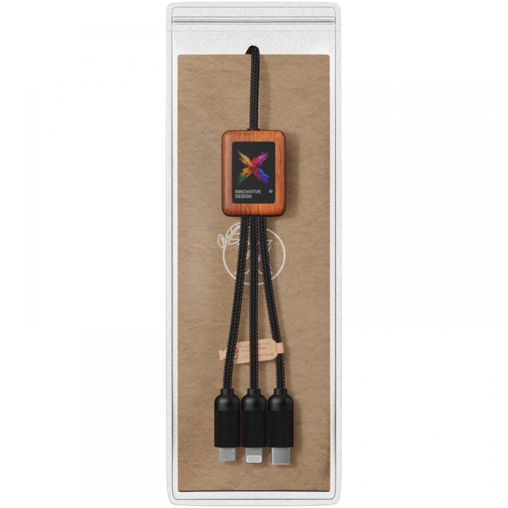 SCX. design C38 40W 5-in-1 Ladekabel aus rPET in quadratischem Bambusgehäuse mit Leuchtlogo