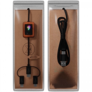 Artikel-Nr: CPO2PX13890Ladekabel mit Datenübertragungsfunktion und doppeltem, leuchtendem Logo, aus Gummi mit Bambusoberfläche. Das Kabel ist aus nachhaltigen Materialien hergestellt: recyceltem ABS-Kunststoff und rPET aus recycelten Flaschen. Es kann mit Apple CarPlay und Android Auto für Auto-Apps verwendet werden. Dank seines dualen USB-A- und USB-C-Ausgangs ist das Kabel zu 100 % kompatibel mit den neuesten Computern auf dem Markt (USB-C). Das Kabel kann mit zwei leuchtenden Logos (eines auf jeder Seite) individuell gestaltet werden. Länge des Kabels: 1 Meter. Wird in einem TPU-Beutel (17,5 × 5,5 cm) mit einer Papierkarte geliefert. Inklusive 3 Jahre Garantie.