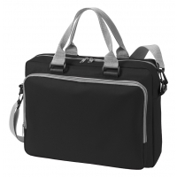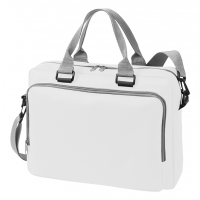 großes Reißverschluss-Hauptfach mit flachem Einsteckfach, große Reißverschluss-Vortasche mit Organizer-Elementen, abnehmbarer, längenverstellbarer Umhängegurt, Handgriffe