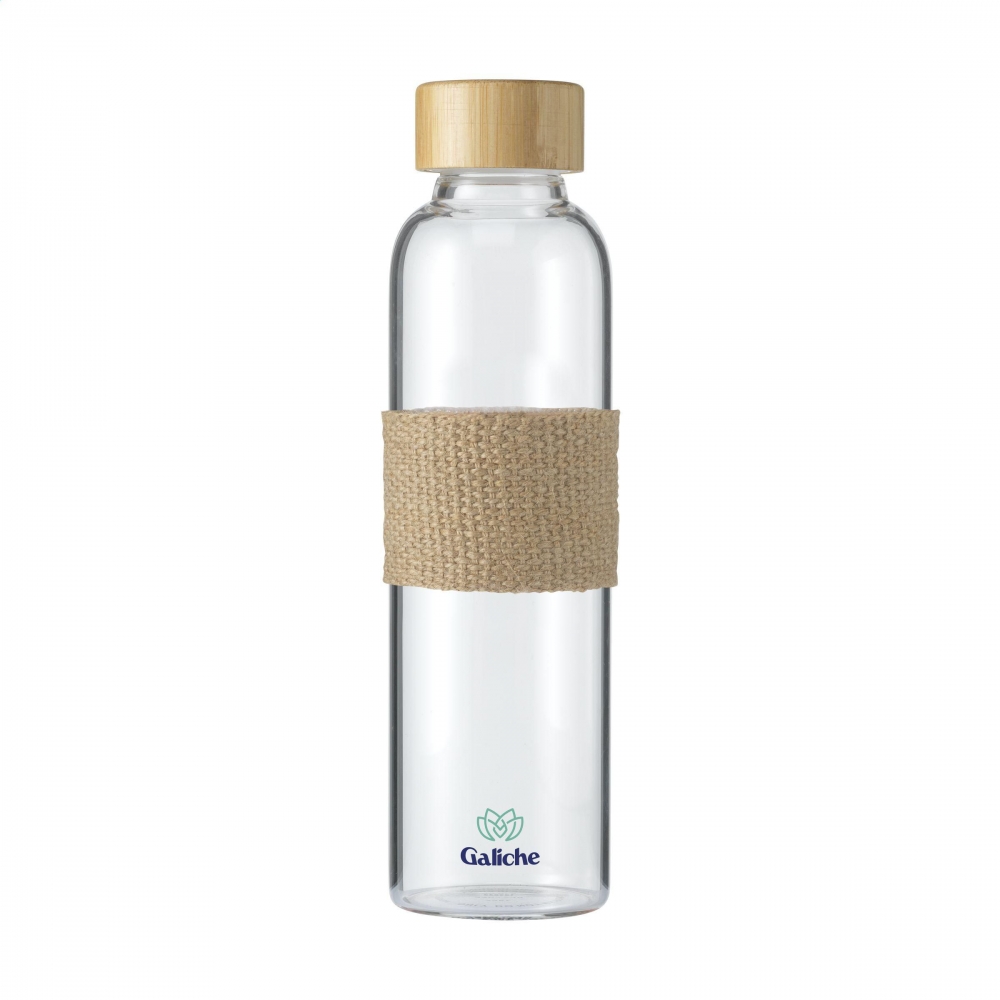 Artikel-Nr: CLP265227-823Schlanke, auslaufsichere Wasserflasche aus Borosilikatglas mit Bambus-Schraubverschluss und Jutehülle. Ausnahme des Schraubverschlusses spülmaschinenfest. Fassungsvermögen 500 ml.