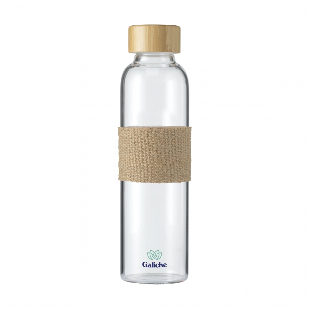 Artikel-Nr: CLP522744Schlanke, auslaufsichere Wasserflasche aus Borosilikatglas mit Bambus-Schraubverschluss und Jutehülle. Ausnahme des Schraubverschlusses spülmaschinenfest. Fassungsvermögen 500 ml. Wird einzeln in einem Kraftkarton geliefert.