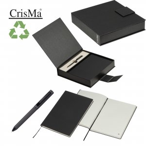Artikel-Nr: MCM2438603Hochwertiges Geschenkset bestehend aus einem blauschreibenden Metallkugelschreiber, einem Notizbuch mit Softcover und 128 linierten Seiten aus recyceltem Papier. Verpackt in schwarzer Geschenkbox mit Magnetverschluss. Ihre Werbung drucken wir außen auf die Box.