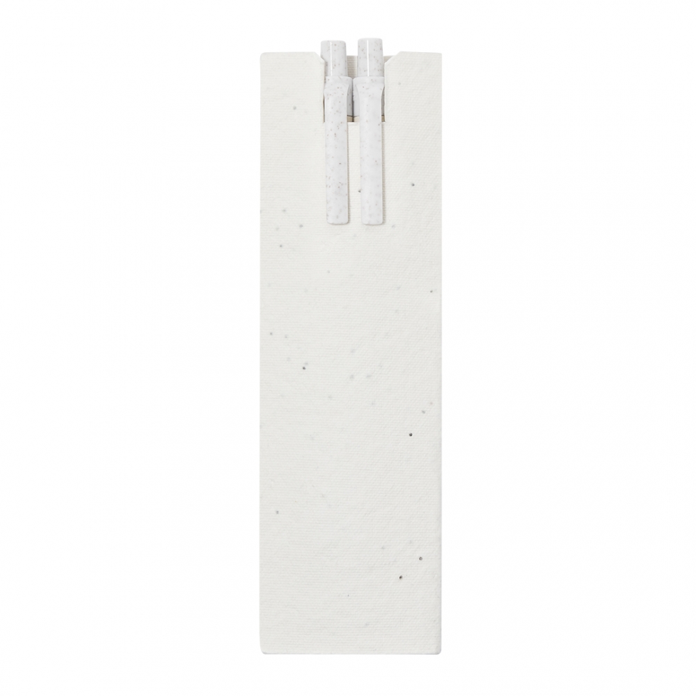 Artikel-Nr: KTO21705001000Set aus Kugelschreiber und ewigem Bleistift, hergestellt aus recycelten Milchkartons, präsentiert in einer Papiertasche mit Samen. Kugelschreiber mit blauer Tinte und Bleistift mit ewigem Ende, um so immer denselben Bleistift verwenden zu können und Abfall zu vermeiden, beide mit Druckmechanismus und passendem Clip aus Weizengras, mit geprägtem Zeichen. Mit dem Zeichen für recycelte Milchkartons am Körper. Die Tasche enthält Petuniensamen, wodurch sie am Ende ihrer Lebensdauer pflanzbares Papier wird. Enthält Anweisungen zum Pflanzen auf der Rückseite. Milchkartons bestehen größtenteils aus Karton und Aluminium. Während des Recyclingprozesses werden die verschiedenen Materialien der Verpackung getrennt, um sie wiederzuverwenden und neu zu nutzen, und tragen somit zur unendlichen Reise der Kreislaufwirtschaft bei. Dieses Material zeichnet sich durch seine hohe Recyclingfähigkeit, geringes Gewicht und Festigkeit aus. Weizengras fördert die Verwendung natürlicher Rohstoffe, wodurch die Schadstoffemissionen reduziert werden.