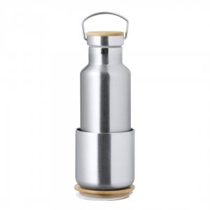 Artikel-Nr: KTO20733009000Praktisches Trink- und Thermobecher-Set aus Edelstahl. Inklusive, 500ml Thermoflasche aus Edelstahl, Schraubverschluss mit Bambusbasis und Tragegriff. Darüber hinaus enthält es 1 Becher mit einem Fassungsvermögen von 300 ml in Edelstahl und einen Bambusdeckel mit Druckverschluss. Präsentiert in einer Kraftbox.
