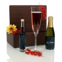 Artikel-Nr: A276S00022Ein klassischer Genuß für jede Gelegenheit ... Trendiges Präsentset bestehend aus einer Flasche Piccolo DOC Treviso Frizzante 0,2 Ltr., kombiniert mit einer Flasche Platin 40 ml. gefüllt mit feinstem Cassis Likör 25 % vol. und verpackt in einer modernen Präsentkartonage mit farblich passendem Sizzle Pak. Werbeanbringung mittels individuellem Etikett auf Anfrage möglich.