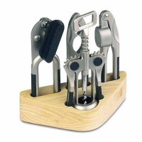 Bestehend aus Knoblauchpresse, Dosenöffner, Nussknacker und Korkenzieher, im Ständer