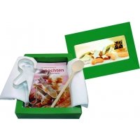 Artikel-Nr: 449004303Dieses Geschenk-Set zu Weihnachten enthält eine große Ausstechform 18 x 13, 7 cm, ein Küchentuch 50 x 70 cm, Rührlöffel und Plätzchen-Backbuch (97 Seiten). Alles ist handlich zum Überreichen in einem schönen grünen Geschenk-Karton verpackt. Platz für den Werbedruck ist auf dem Standardmotiv der Karte oder eine eigene Gestaltung, jeweils ab 250 Stück.