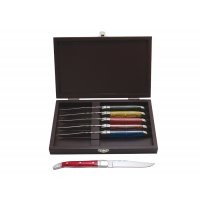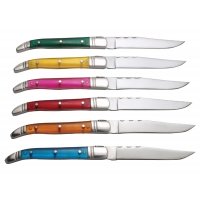 Set mit 6 Laguiole-Steakmessern, farbig-transparente Griffe