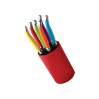 Artikel-Nr: 688DUB144Gezahnte Klingen aus 420s Edelstahl, lebensmittelkonform (Norm EN10088-2 2005). Griff aus farbigem ABS Kunststoff (6 verschiedene Farben): himmelblau, anisgrün, korallenrot, zitronengelb, purpur, orange. Nutzbare Klingenlänge: 11 cm. Lieferung in einem Ständer aus rotem Kunststoff, gummiert.